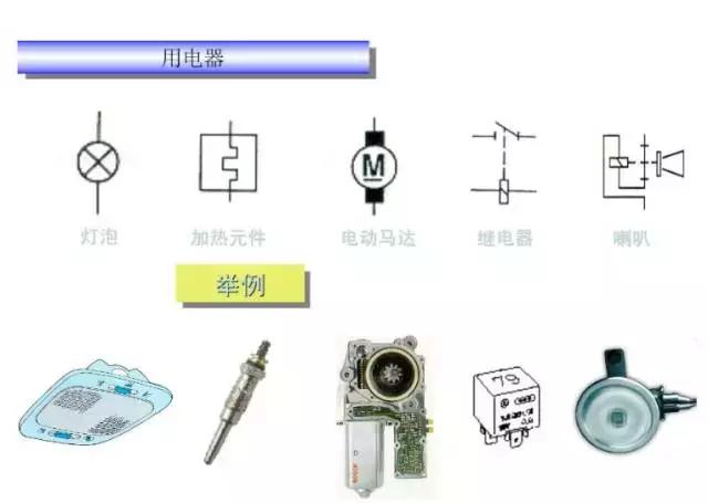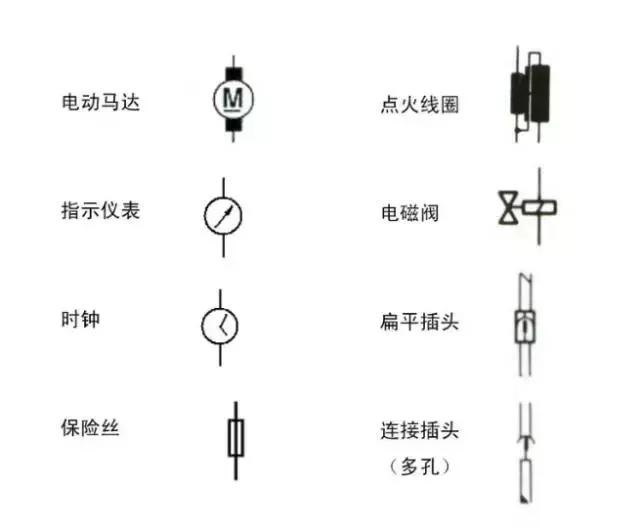 再復雜的汽車電路都是由許多單回路并聯(lián)而成的,由于每個單回路都比較簡單,中間環(huán)節(jié)與用電器是串聯(lián)在一起的,因此無需很深的理論基礎,正常的人都可以學會。接下來,帶大家看看汽車的電路符號。
